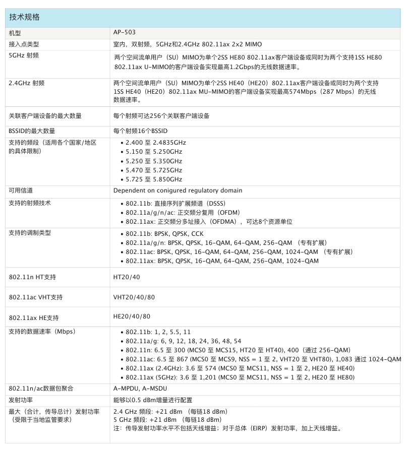 室內(nèi)中密度Wi-Fi 6接入點(diǎn)AP-503提供兼具高成本效益與高性能的連接,可以幫助各類(lèi)組織應(yīng)對(duì)因移動(dòng)使用需求提高、轉(zhuǎn)向云或物聯(lián)網(wǎng)環(huán)境而帶來(lái)的設(shè)備增長(zhǎng)挑戰(zhàn)。503 系列的實(shí)際聚合數(shù)據(jù)速率高達(dá) 1.775 Gbps(HE80/HE40),可以為學(xué)校、中型辦公室和零售賣(mài)場(chǎng)等中等密度的場(chǎng)地和工作場(chǎng)所提供所需的連接速度和可靠性。